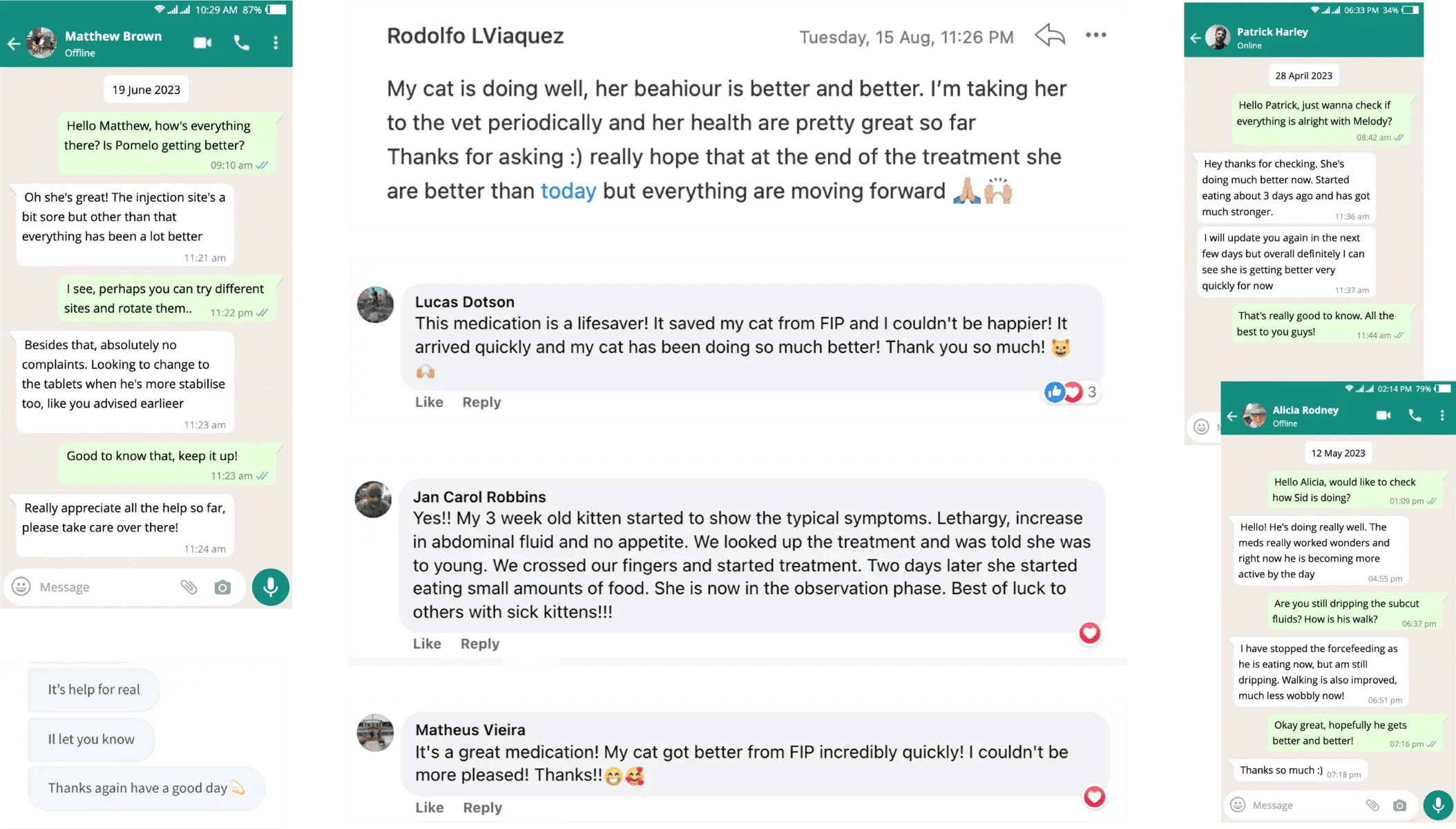 Siamo consapevoli che il trattamento della FIP può essere irraggiungibile per alcuni proprietari di gatti. Nonostante tutte le limitazioni, siamo orgogliosi di fornire un trattamento di qualità e di renderlo il più accessibile possibile. Clicca per visualizzare i prezzi del trattamento FIP e vedere come ci confrontiamo con i prodotti disponibili sul mercato.