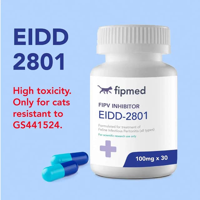 Il EIDD-2801 presenta un’elevata tossicità che lo rende inadatto all’uso a lungo termine richiesto dal trattamento della FIP. L’uso prolungato può portare a mutazioni dell’RNA, aumentando il rischio di cancro.